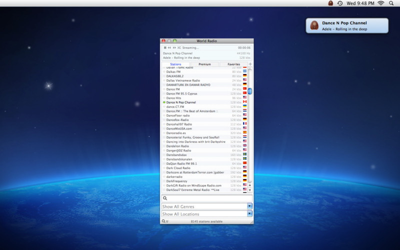 the menubar and provides access to over 10,000 radio stations from